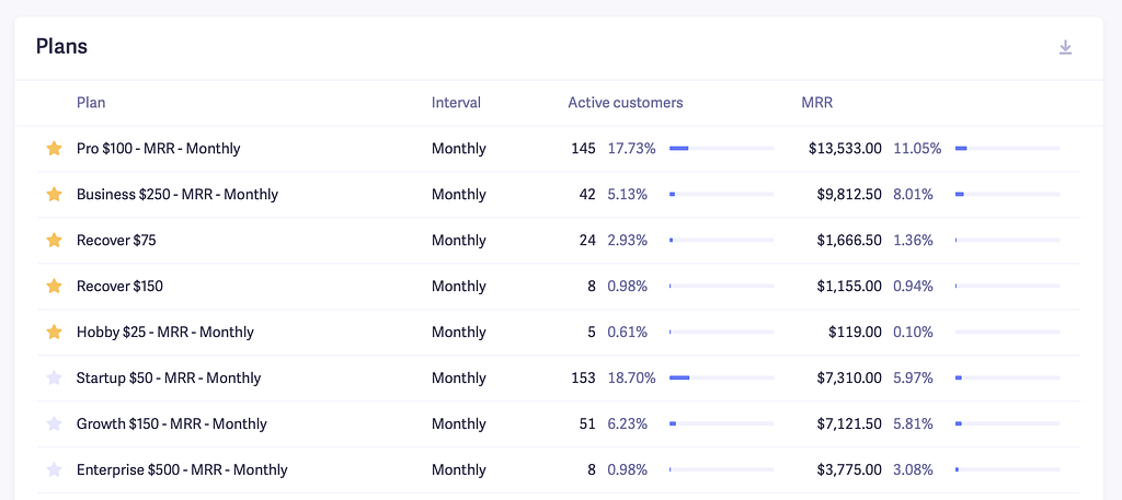 Previously there were two "widgets": A listing of plans and a pie chart of how those plans made up each metric.